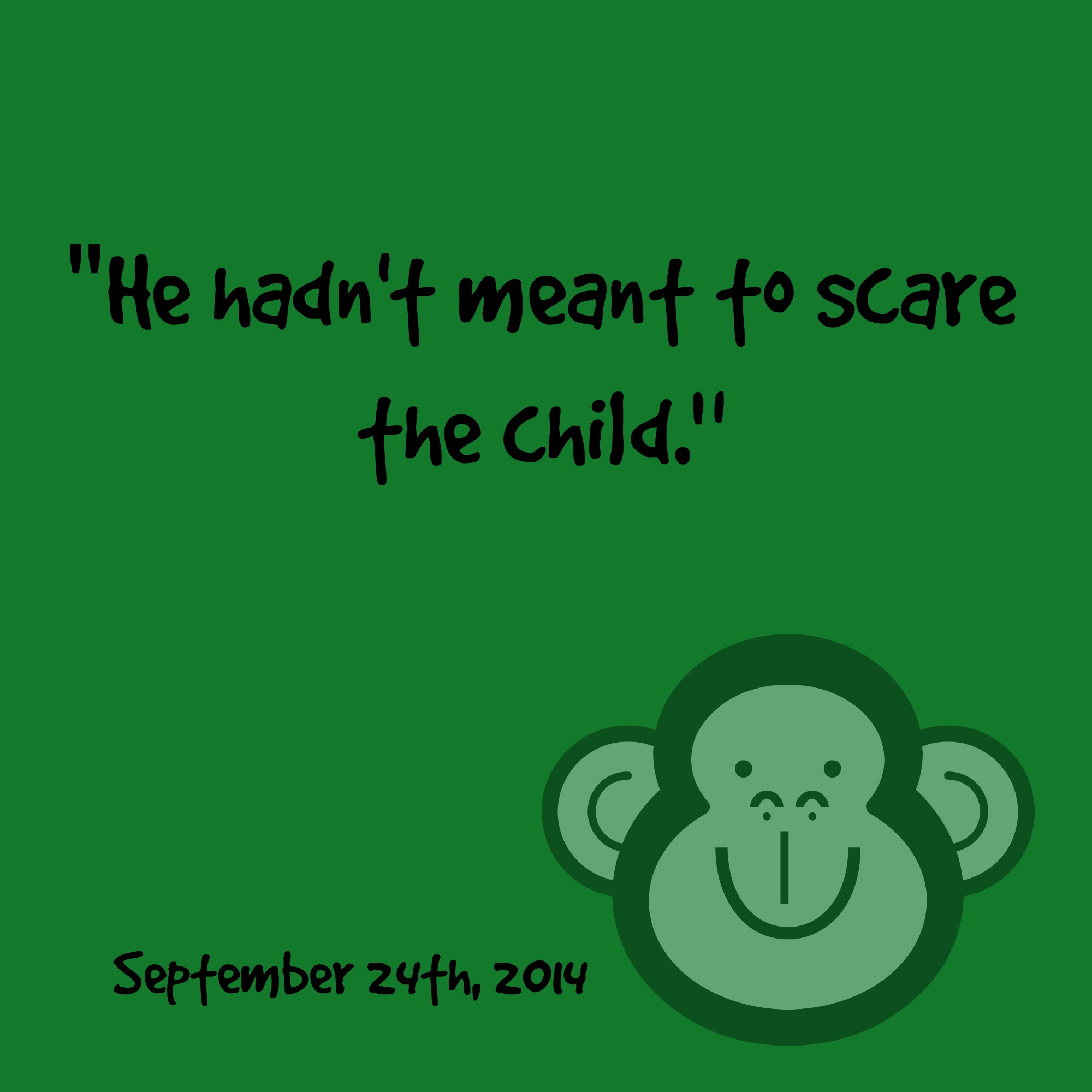 Welcome to WonHundred Word Wednesday. Where a group of authors take a prompt and create a 100 word story. This week’s prompt is: “He hadn’t meant to scare the child.” After looking at my take, I believe I need more sleep. 🙂